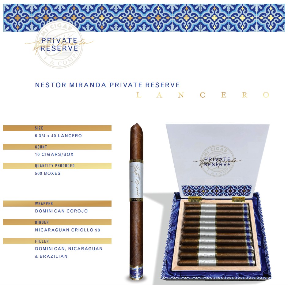 The Nestor Miranda Private Reserve Lancero will be showcased at PCA 2026 in New Orleans. Estimated shipping date: July 2026.